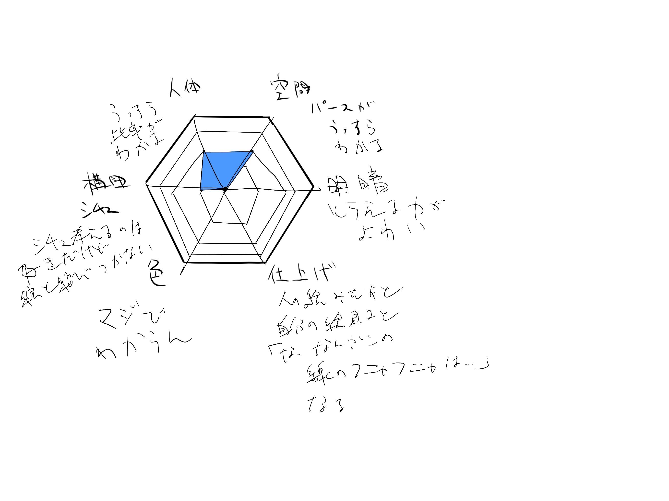 ・シチュエーション考えるのは好きなんだけどそれを絵にしようとしたときうまく頭に出てこない。ここらへんは引き出し不足なのかなーと思う。